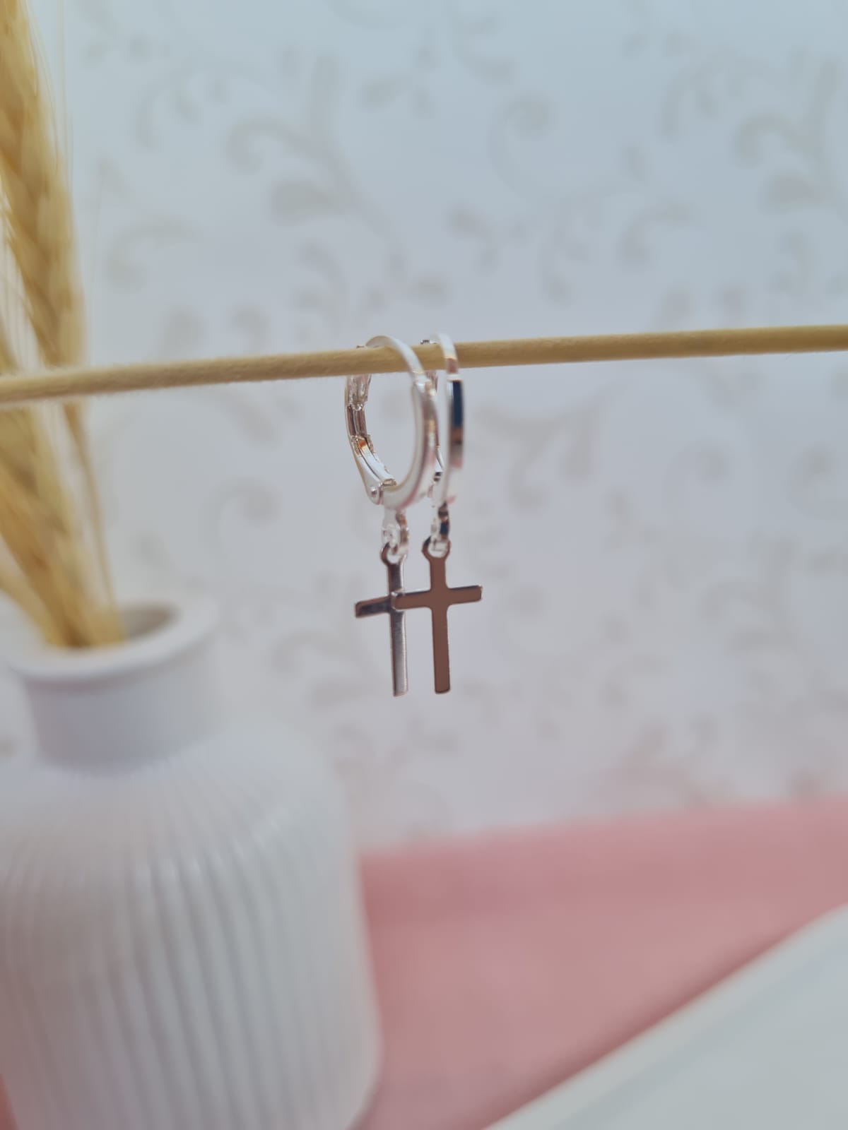 Argolinha de click com pingente de cruz lisa, ótima opção para quem gosta de brinco prático e delicado, e o melhor por ser argolinha de click não machuca atrás da orelha.