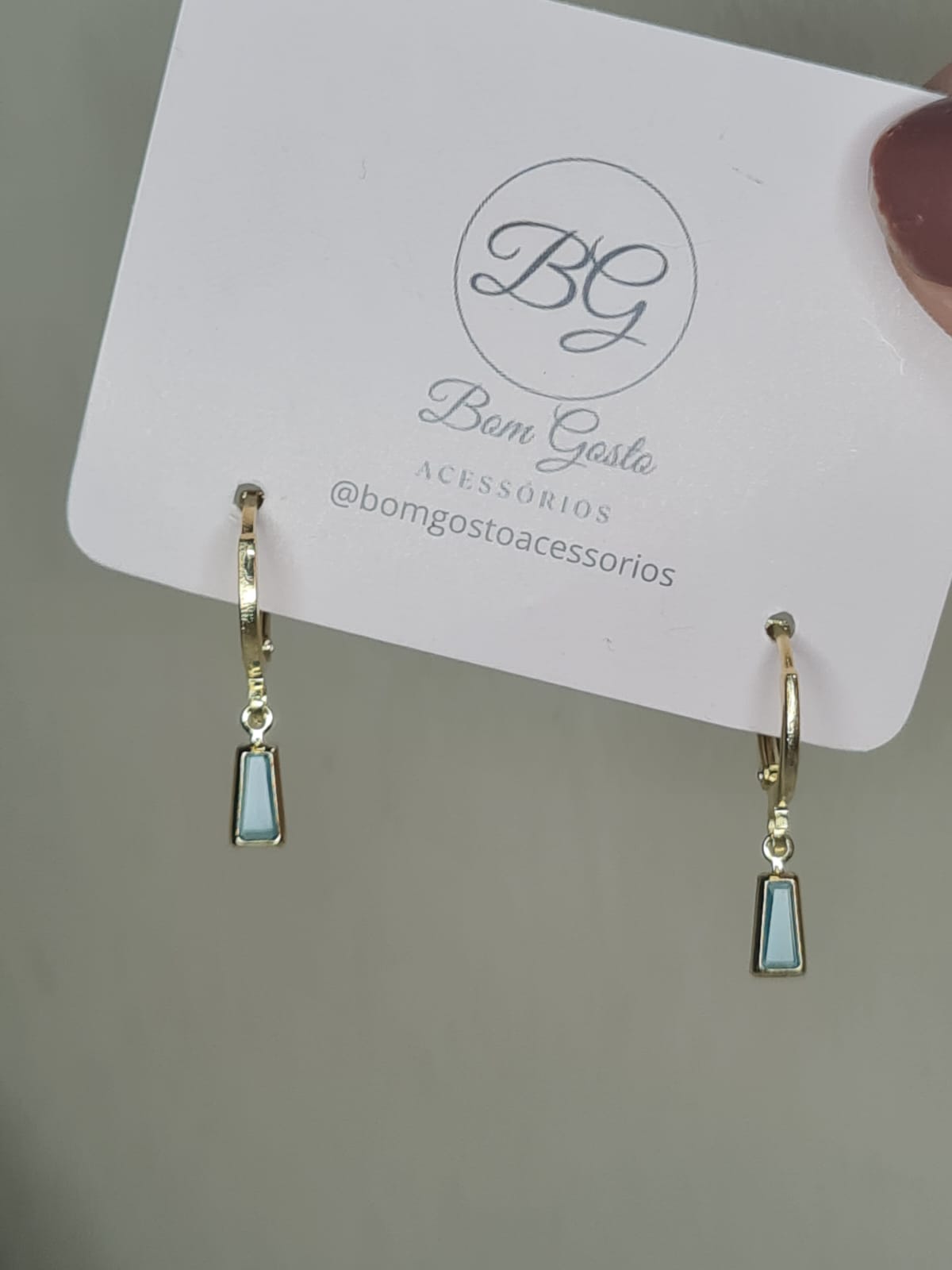 Brinco de argolinha delicada banhada a ouro com pingente de zircônia azul claro.