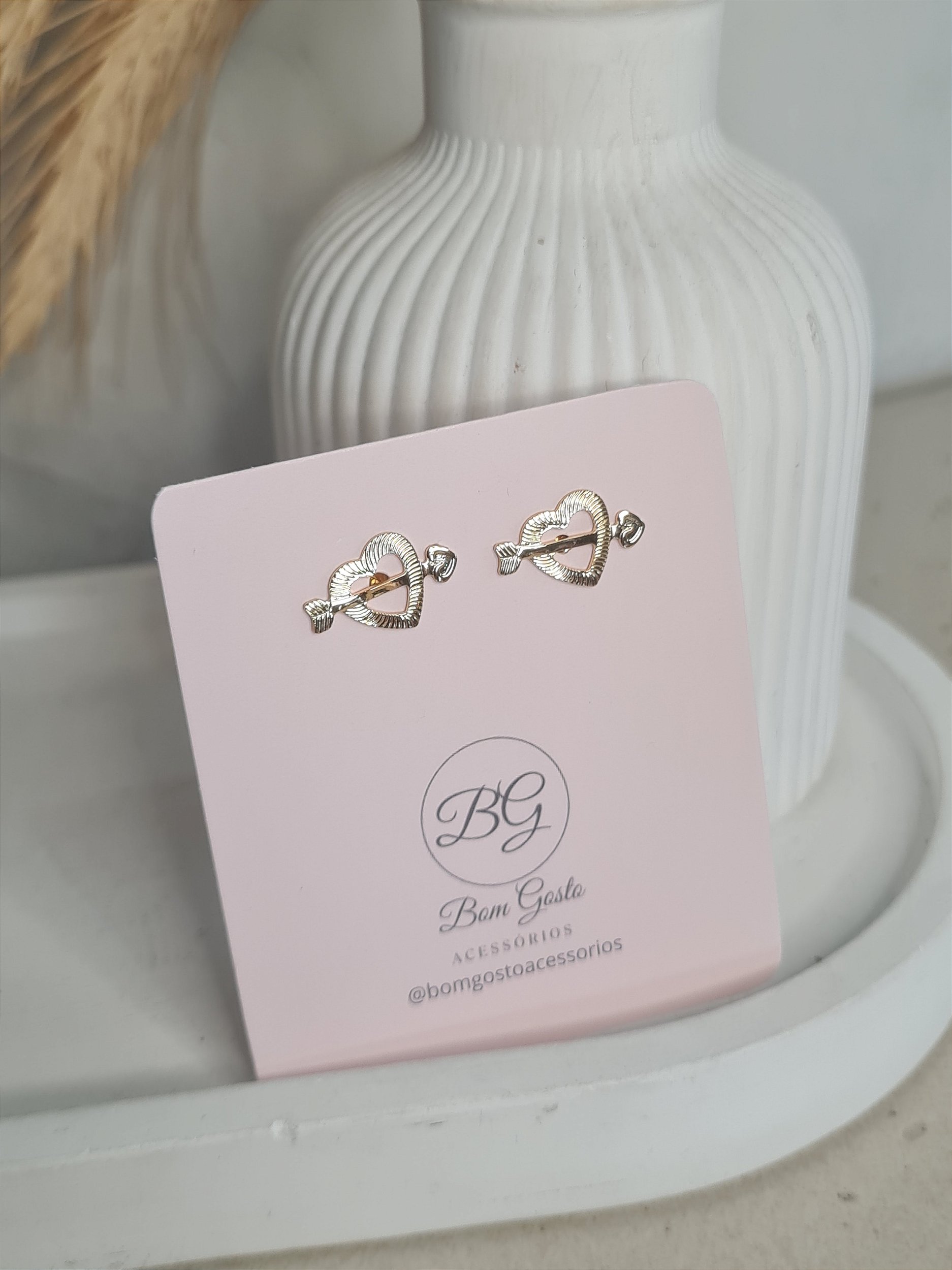 Brinco coração com flecha dourado