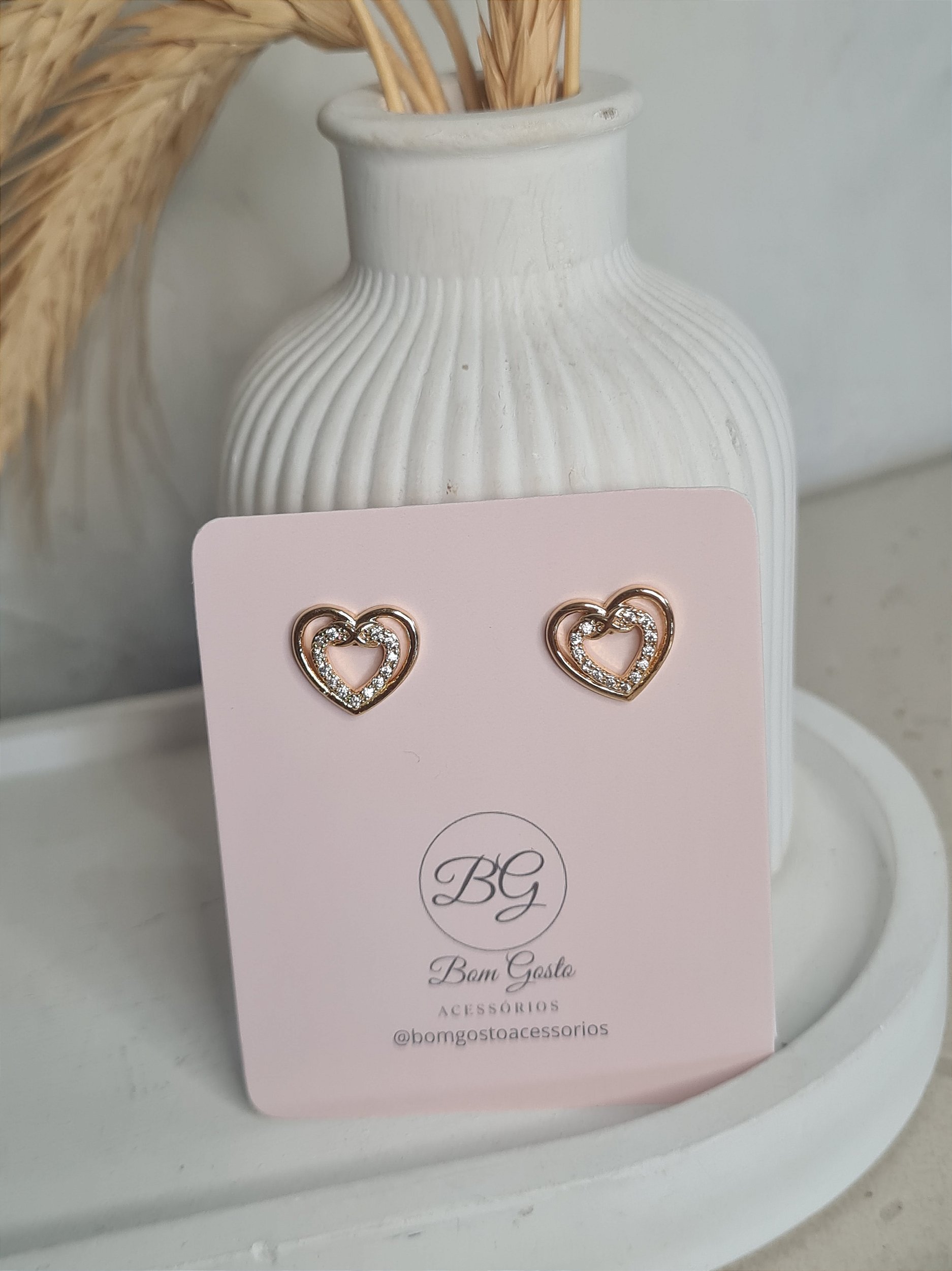 Brinco coração cravejado dourado