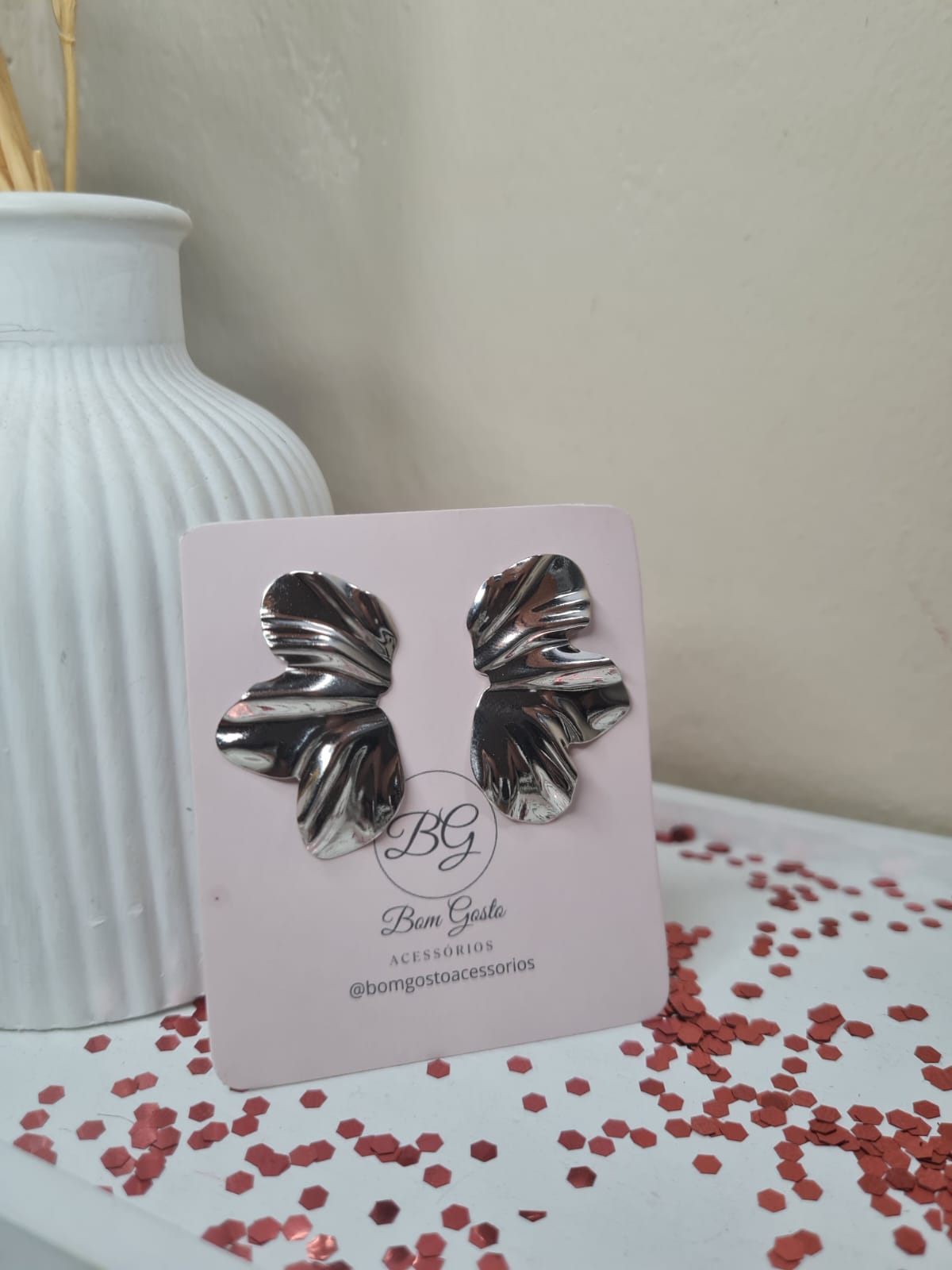 Brinco de meia pétala banhado no prata tradicional. Brinco hipoalergênico.
