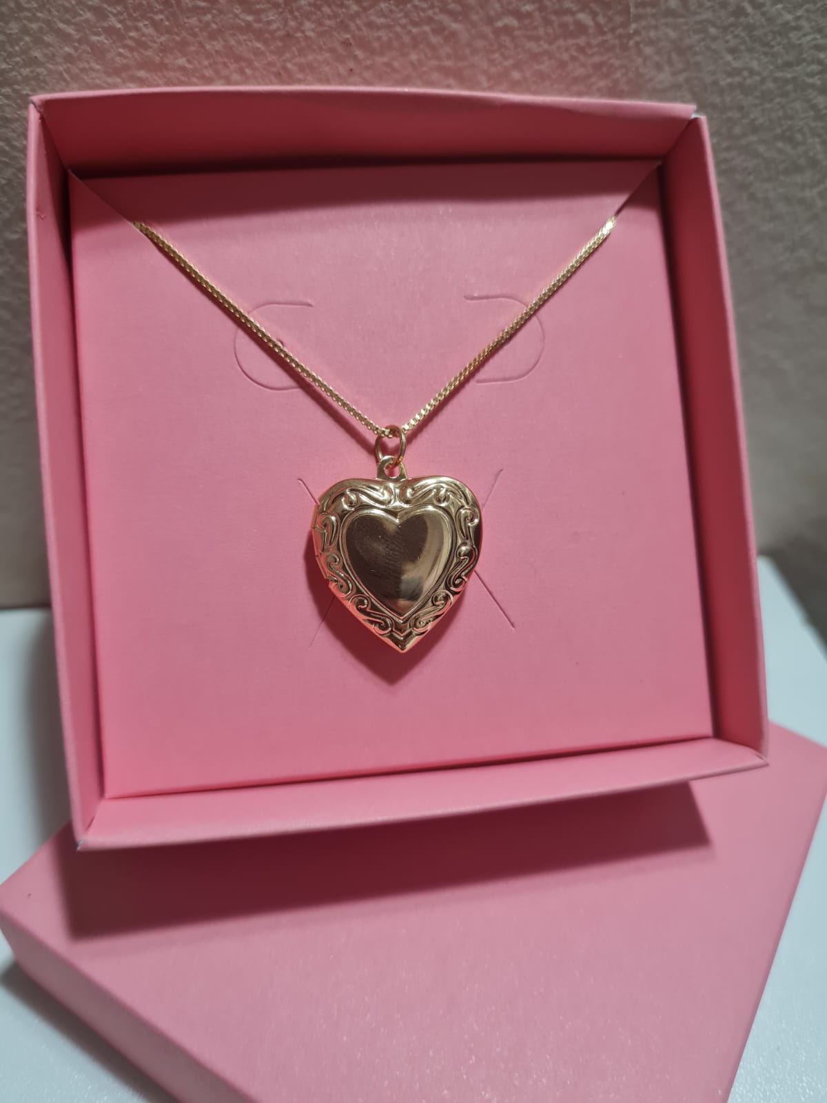 Lindo colar relicário com pingente de coração Colar médio com extensor, banhado a ouro. Acompanha 2 fotos e caixinha para presente.
